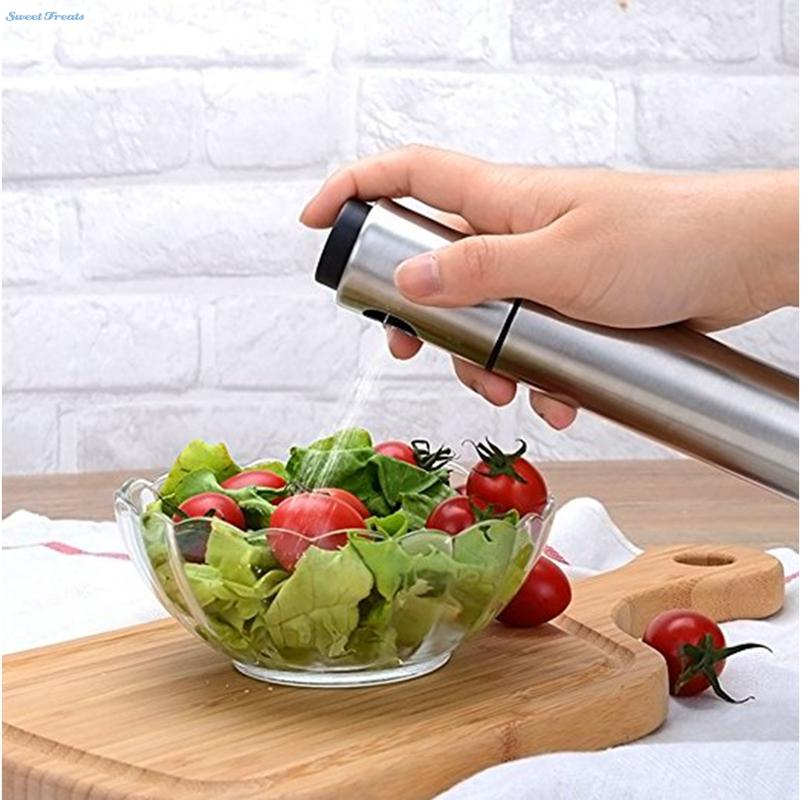 • HIGH-QUALITY MATERIALHigh-quality stainless steel. Food grade plastic. The oil Mister is a healthy, economical and environmentally friendly way to add dressings and oils to food.