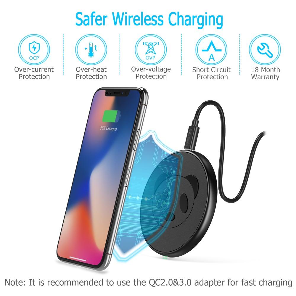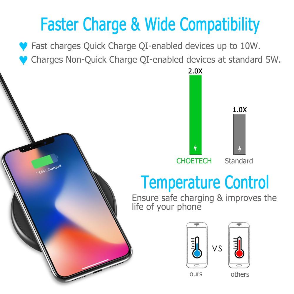 - Fast Charge & Wide Compatibility: Fast Charges up to 10W Qi-enabled and Quick Charge devices like the Samsung Galaxy S9 / S9+ / S8 / S8+ / S7 / S7 edge / S6 edge+ / Note8; or charges Qi-enabled, non-Quick Charge devices like iPhone X / 8 / 8 Plus at a standard 5W
